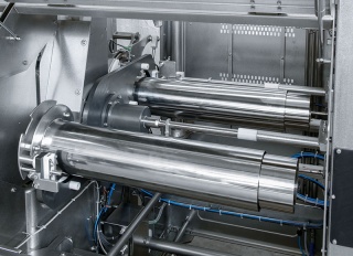 • Maszyna jest wyposażona w modułowy pas podający, specjalnie zaprojektowany do aplikowania dużych mięśni, które nie wymagają szczególnego pozycjonowania w formie.